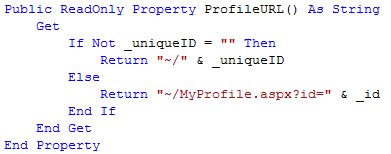 If there is no unique ID established, it will send back the profile page MyProfile.aspx and feed in my Profile ID.